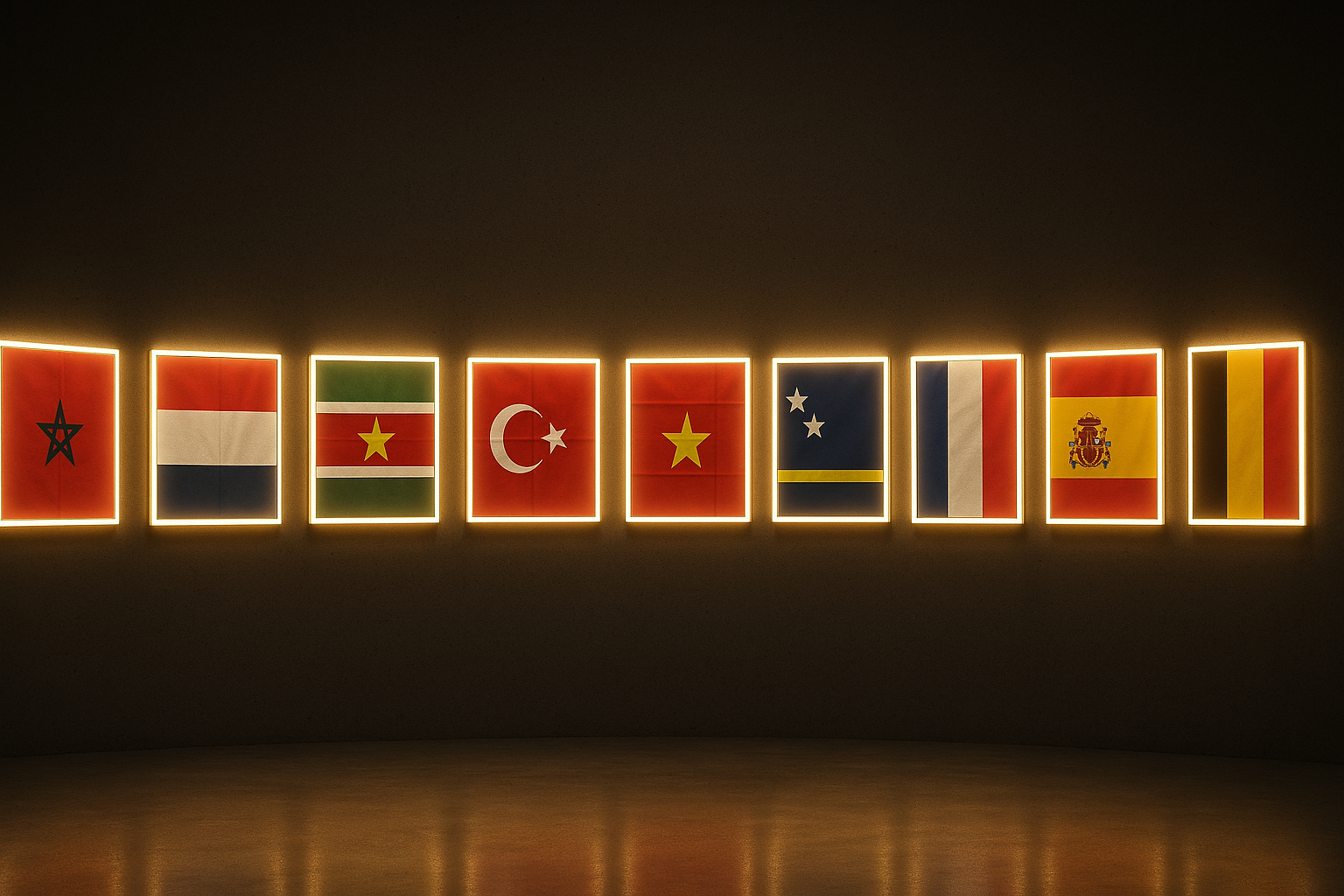 Reflecterende vlaggen met premium glow-effect en diepe kleurintensiteit.